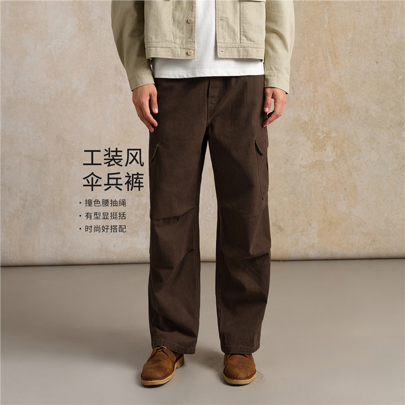 【網上獨家】男裝純棉撞色抽繩鬆緊梭织工裝褲
