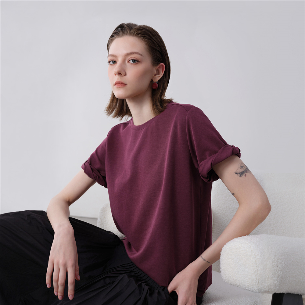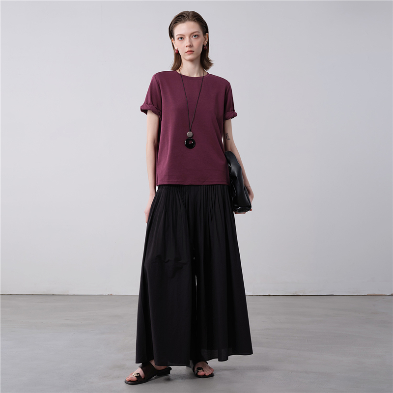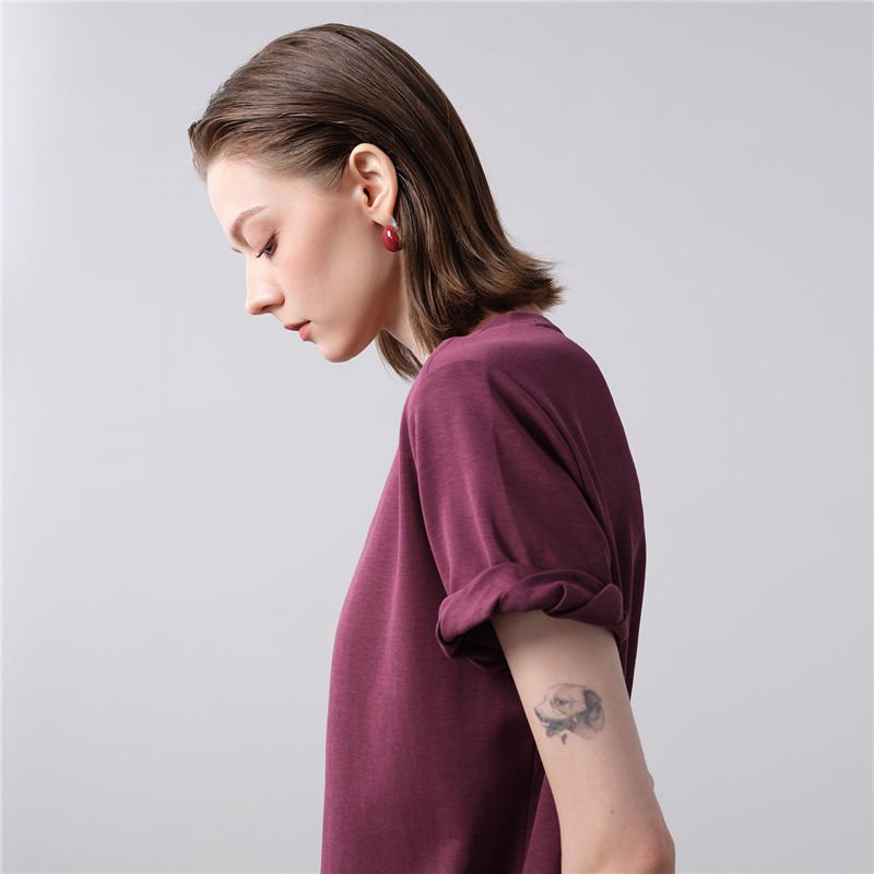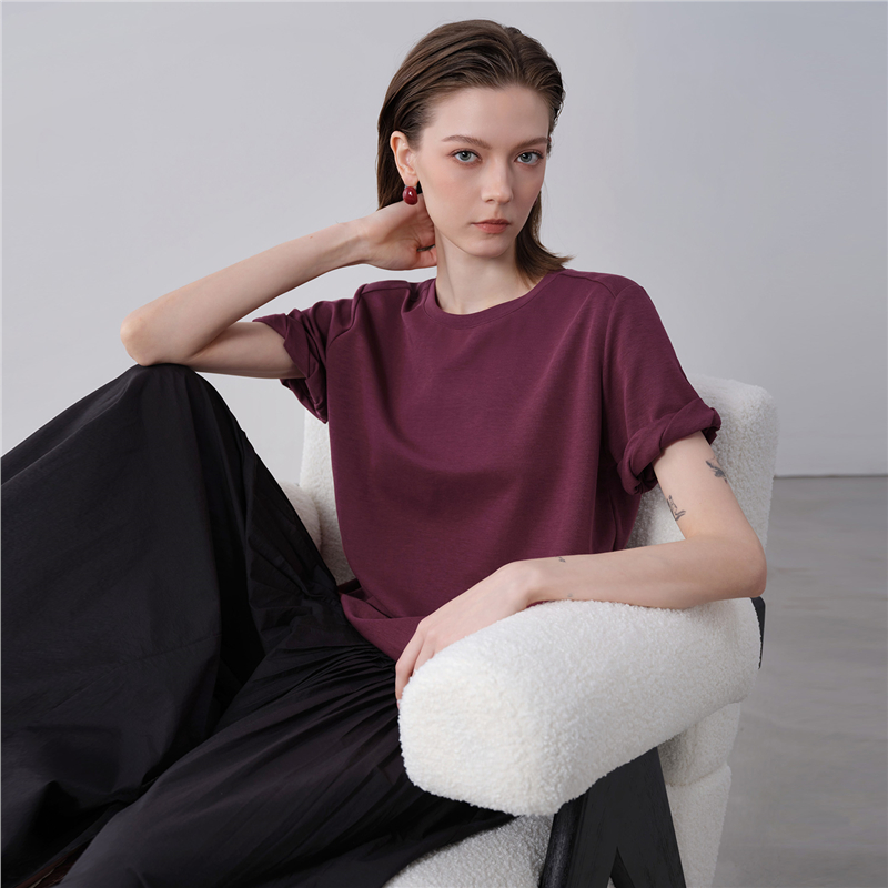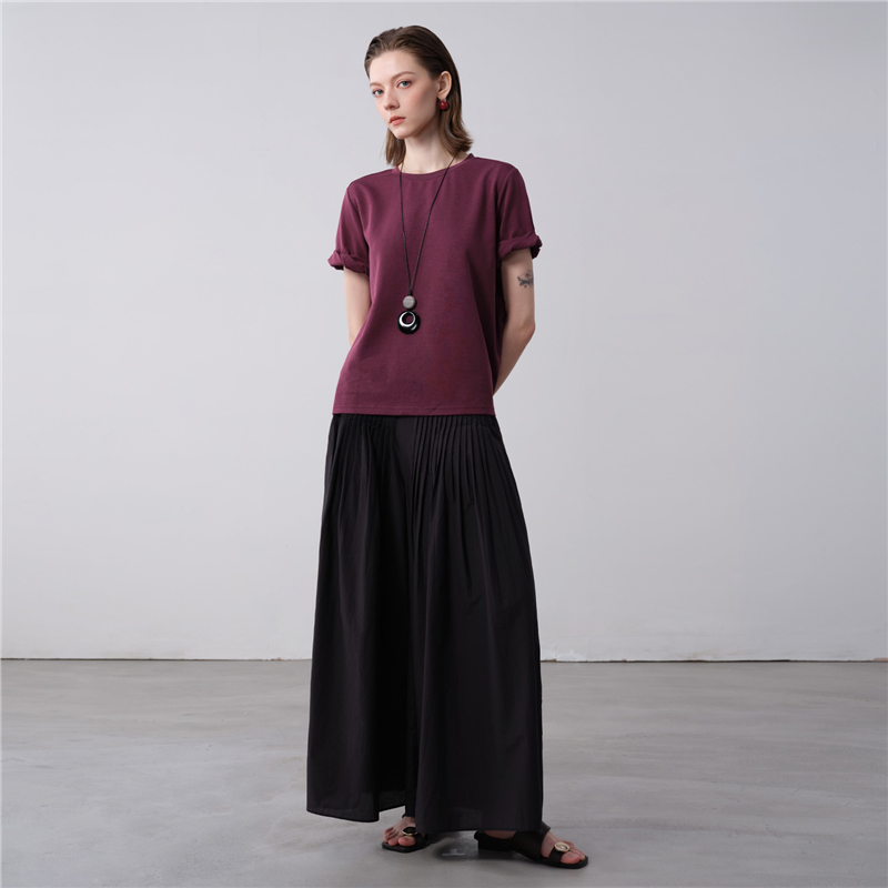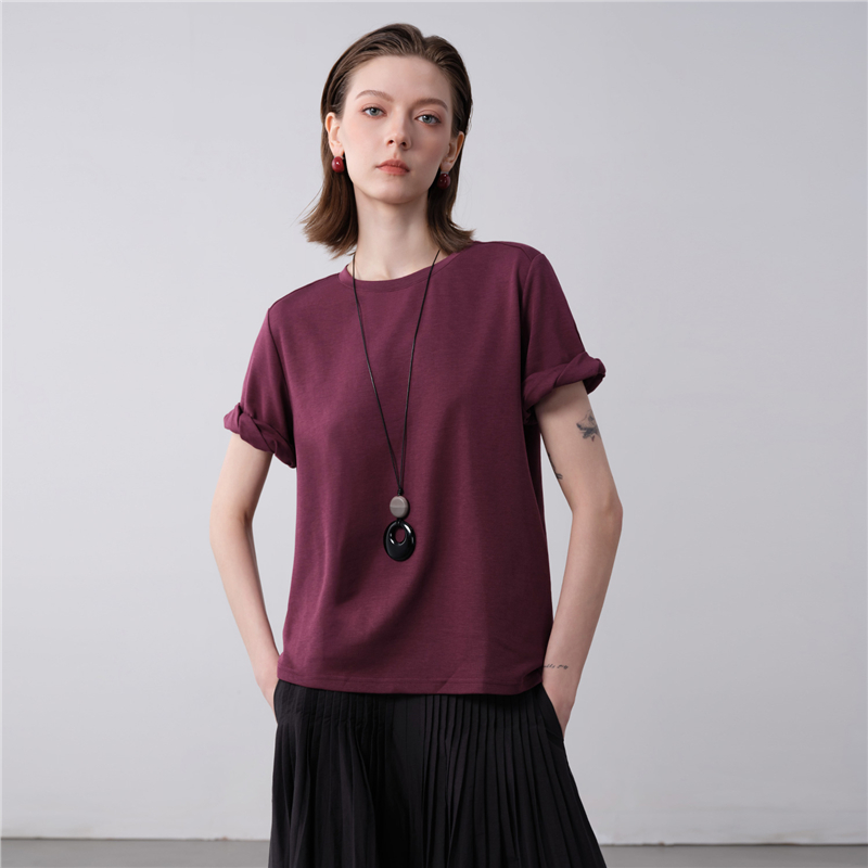 【網上獨家】女裝扭結袖口圓領針織短袖T恤