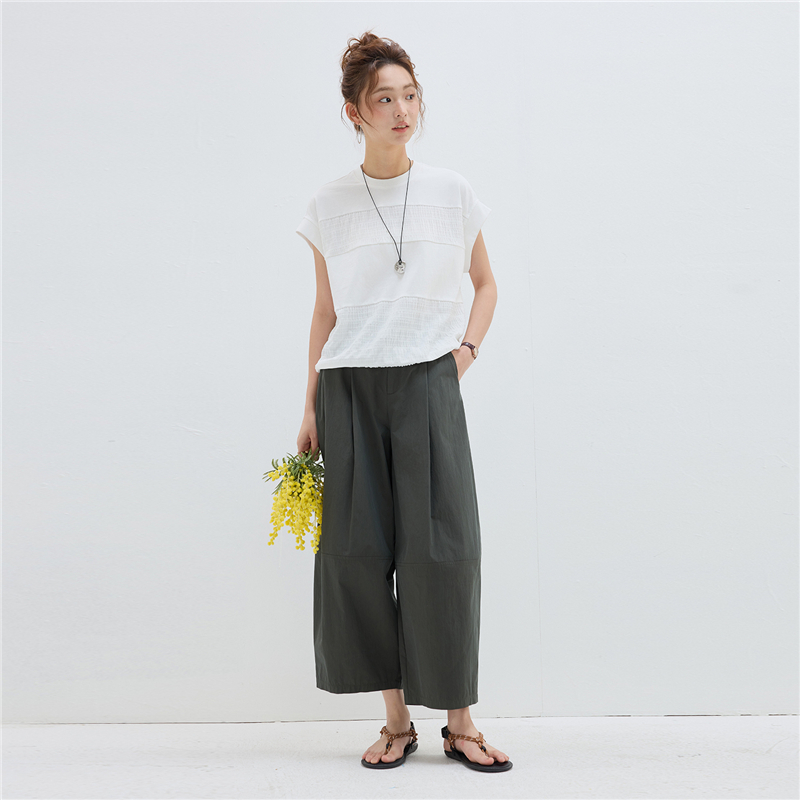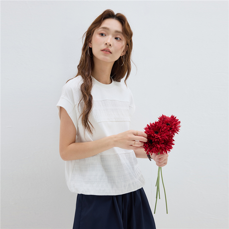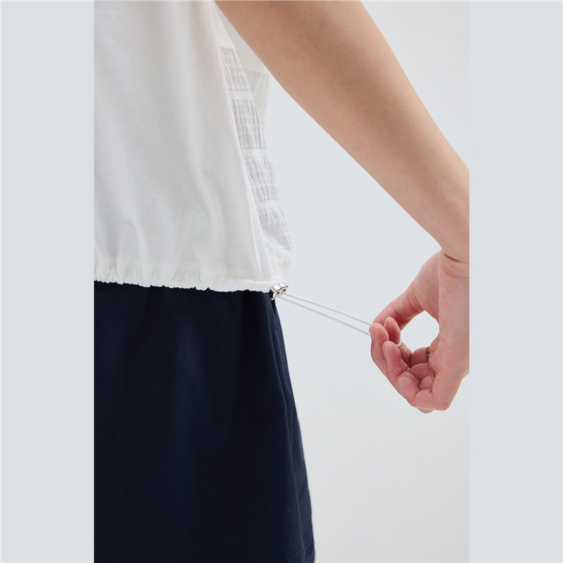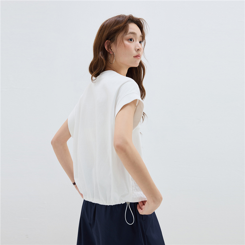 【網上獨家】女裝拼接可束下擺圓領連袖T恤