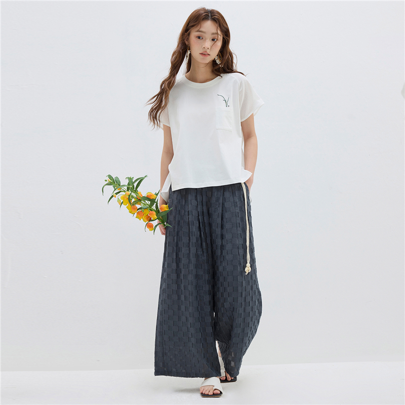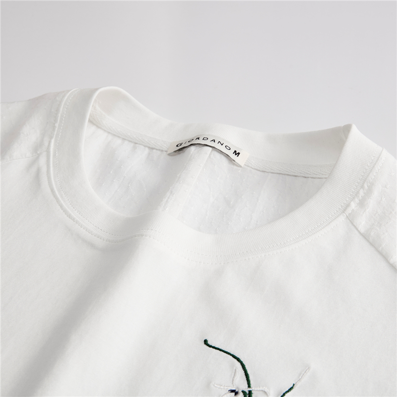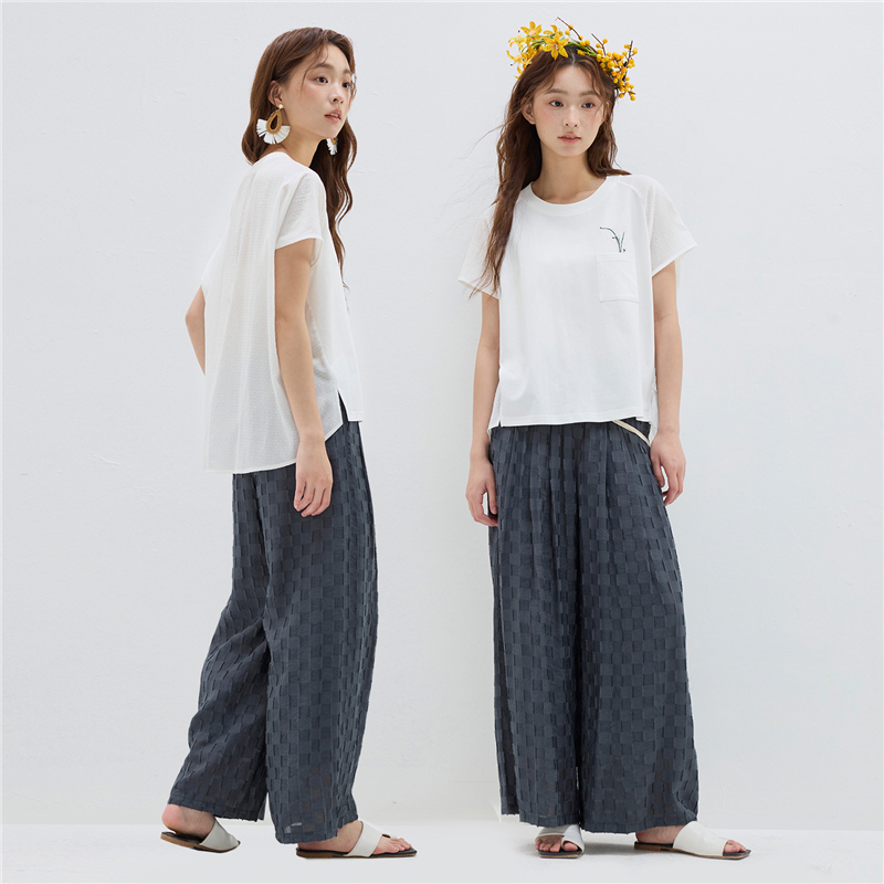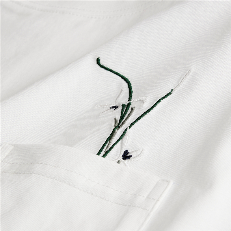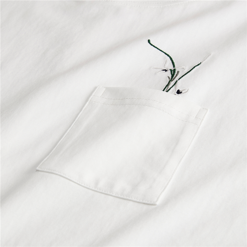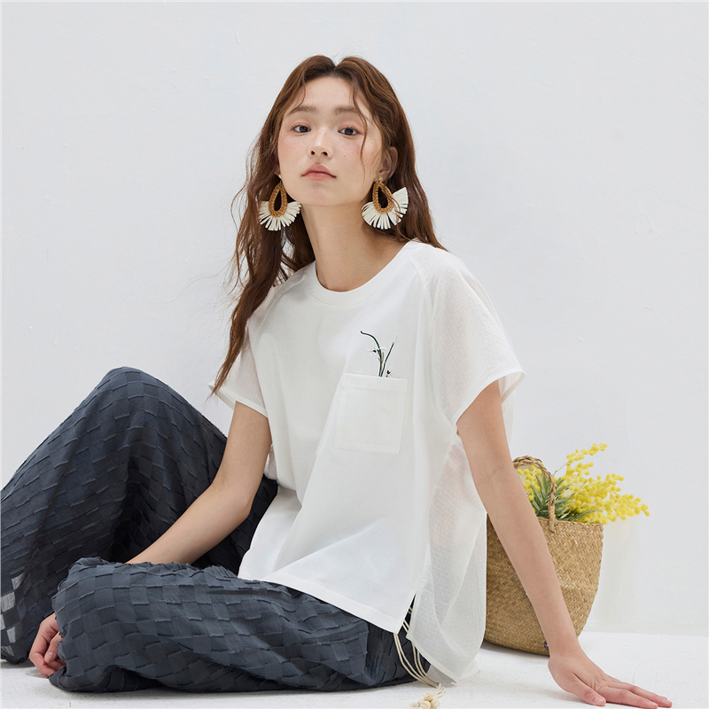 【網上獨家】女裝拼布繡花口袋圓領插肩短袖T恤