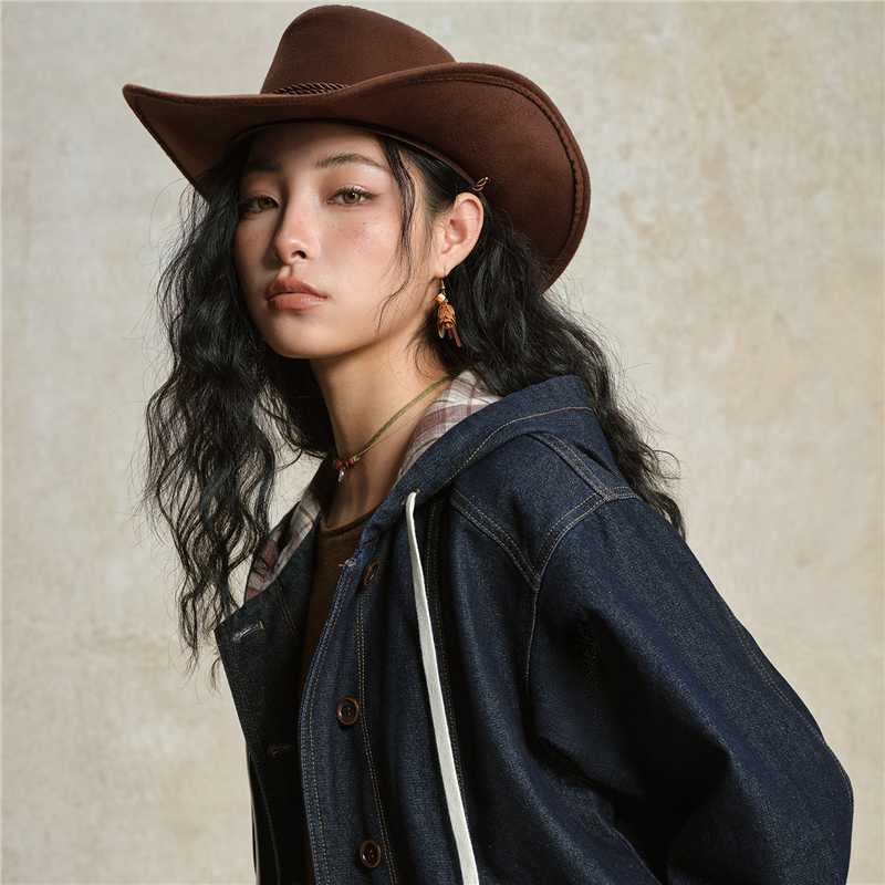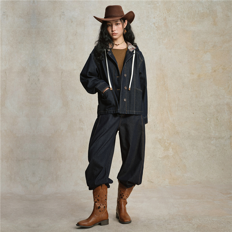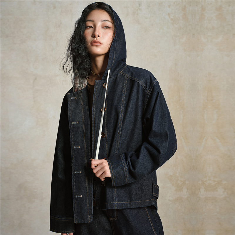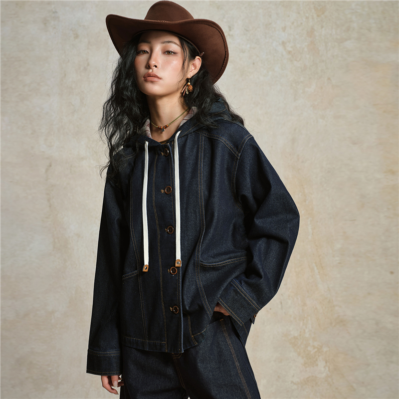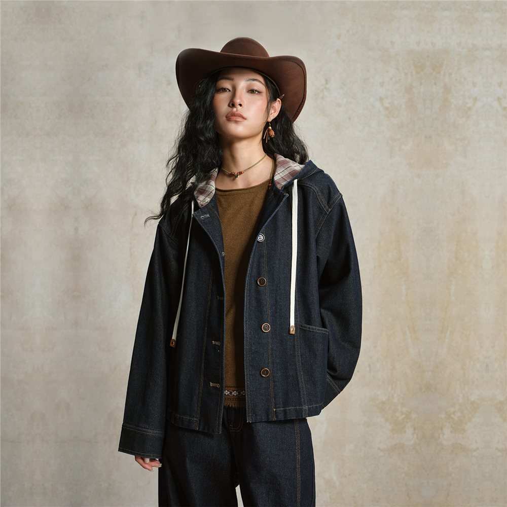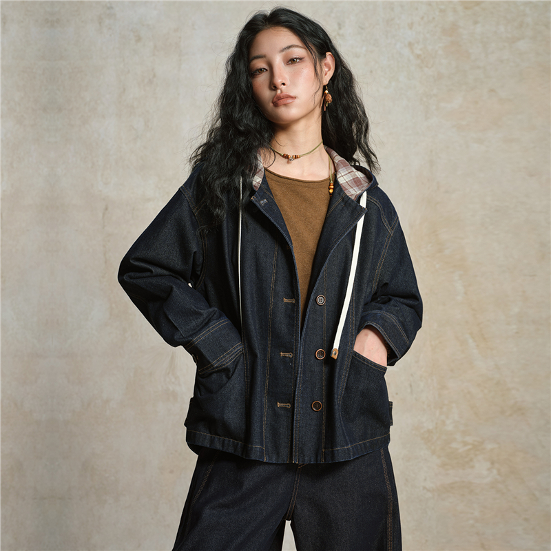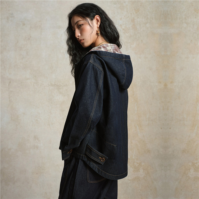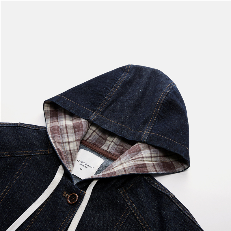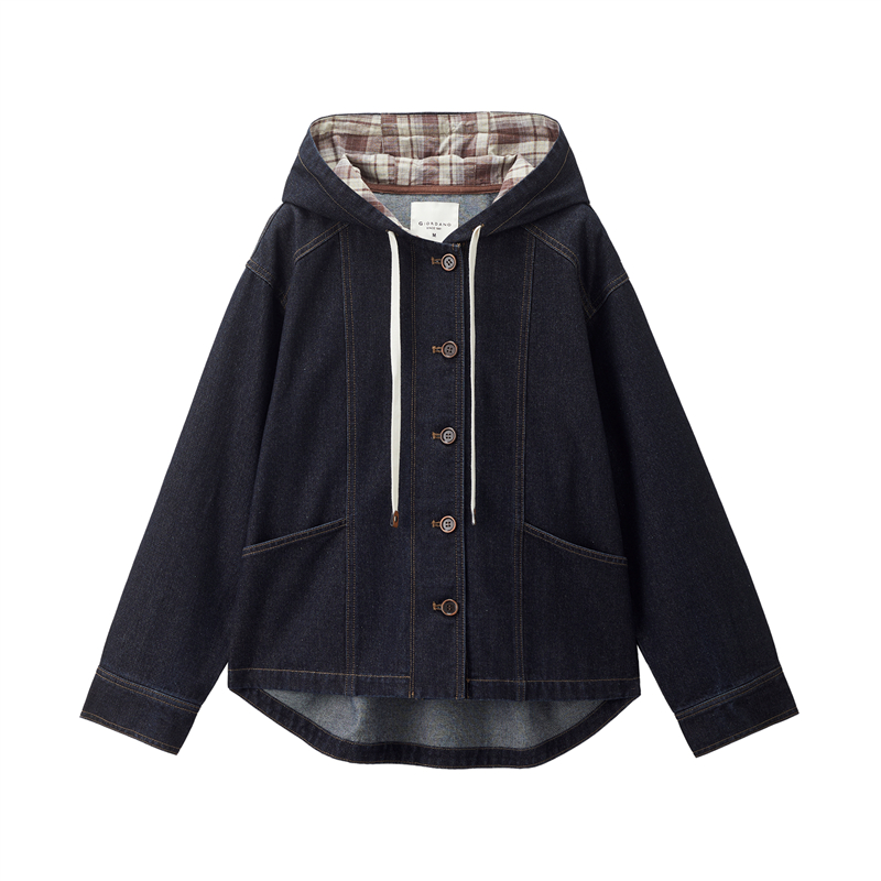 【網上獨家】女裝格紋連帽牛仔外套