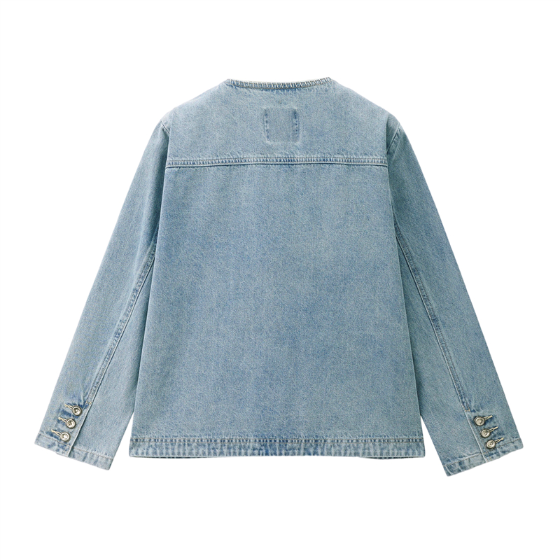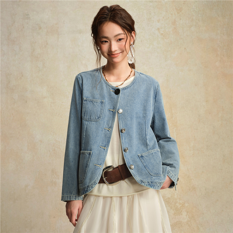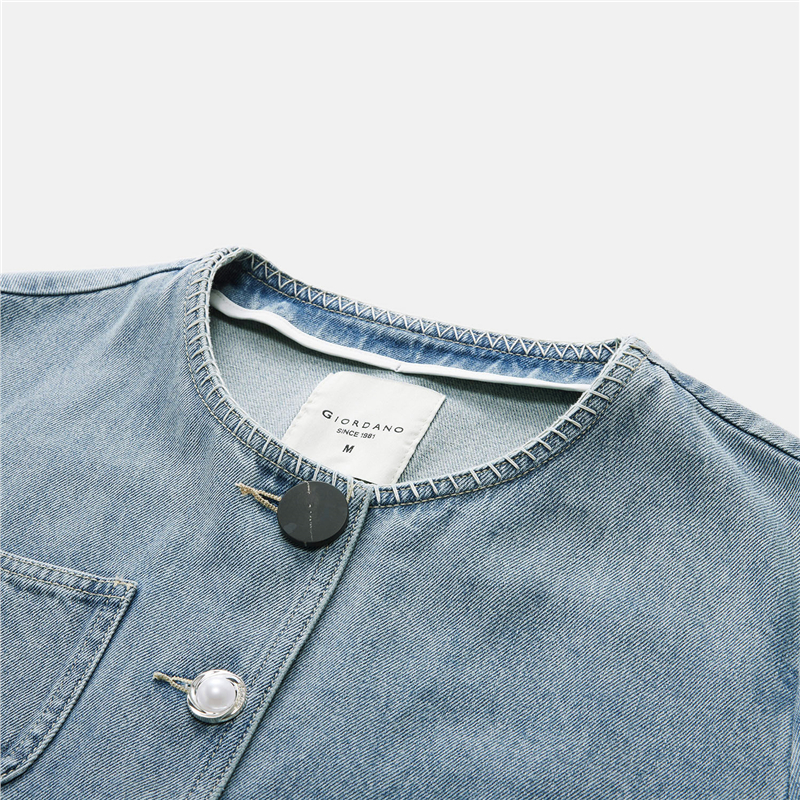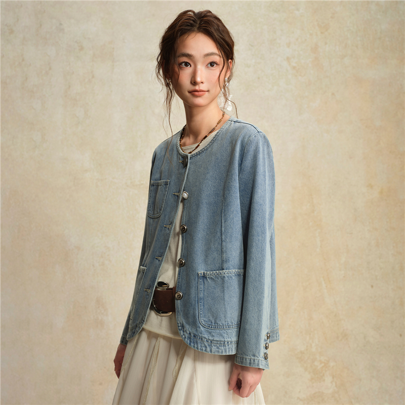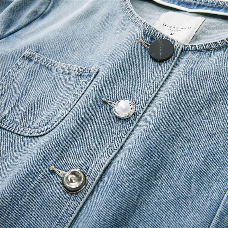 【網上獨家】女裝圓領多口袋不規則鈕扣牛仔外套
