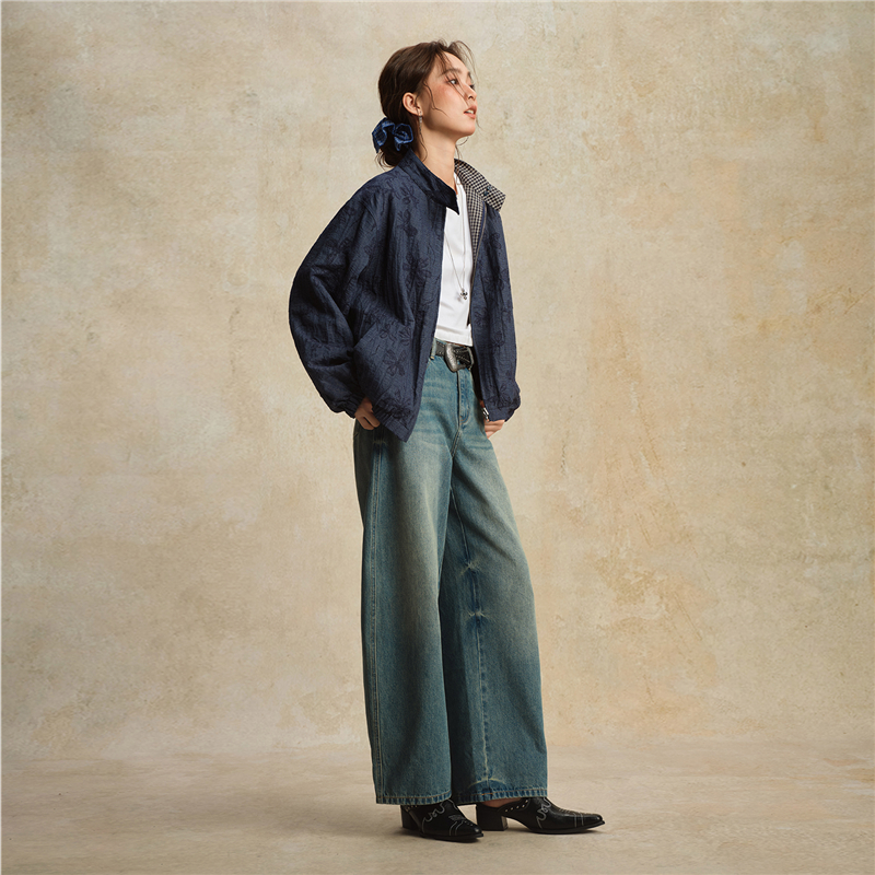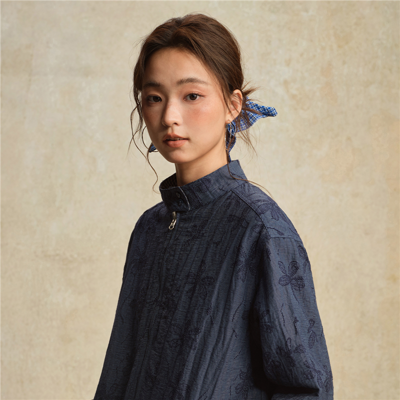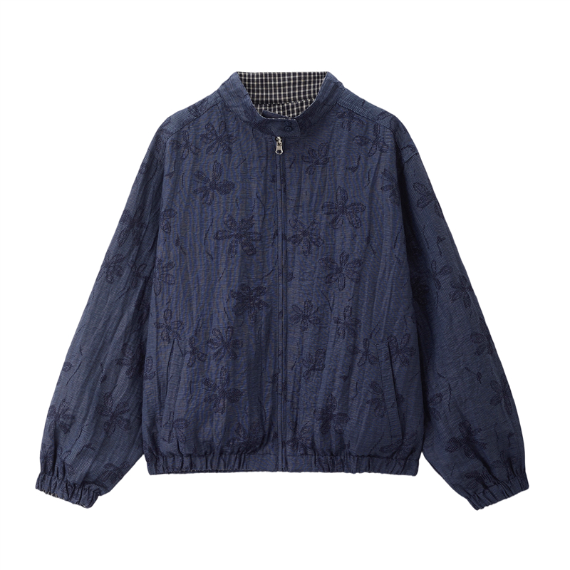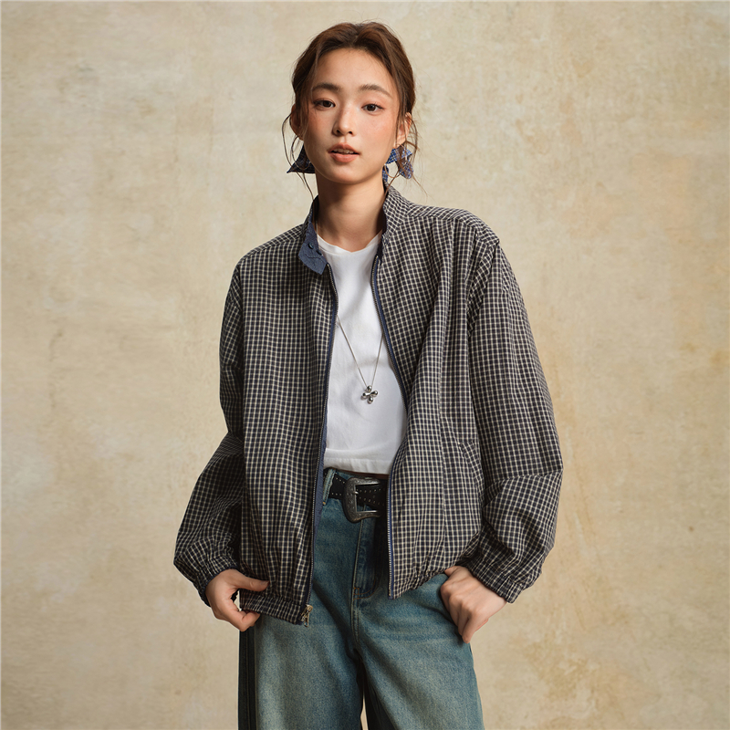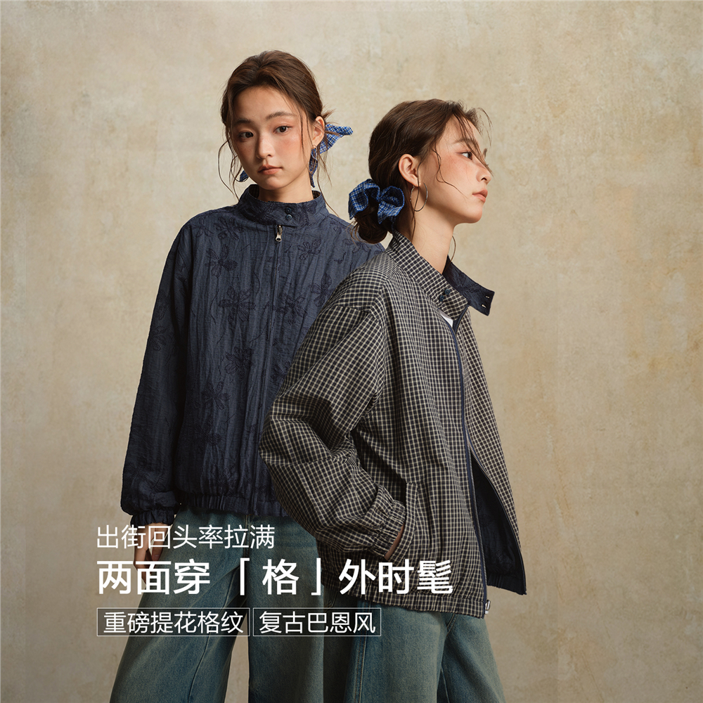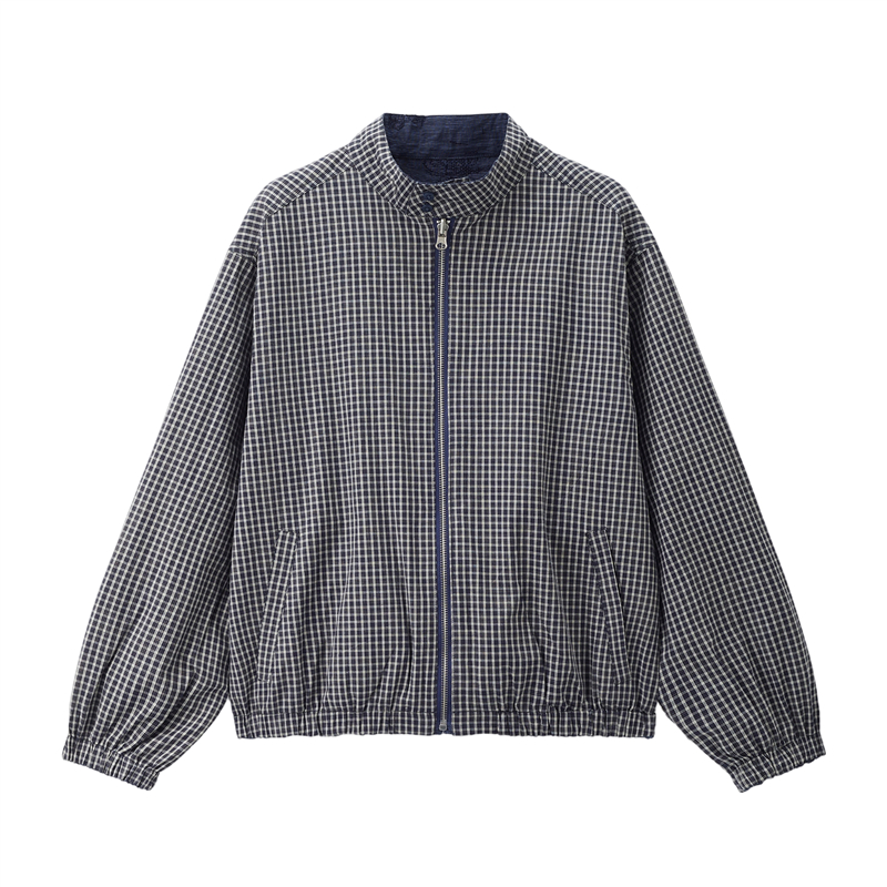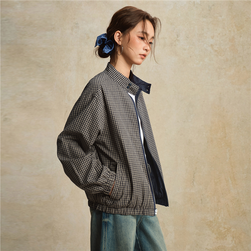 【網上獨家】女裝雙面穿提花格紋立領梭織外套