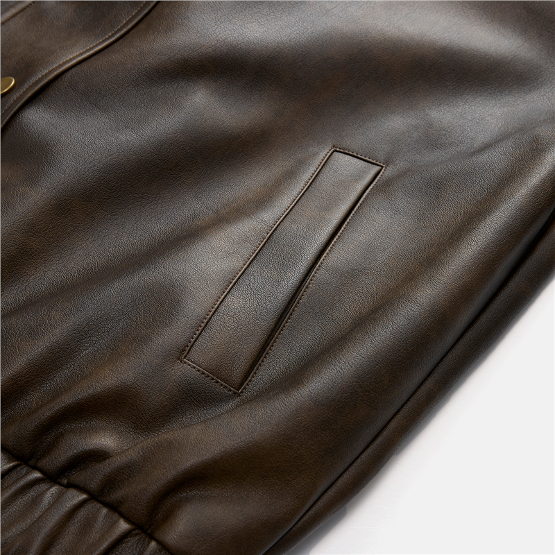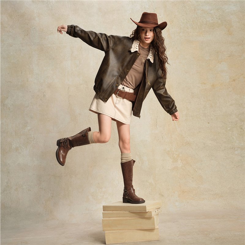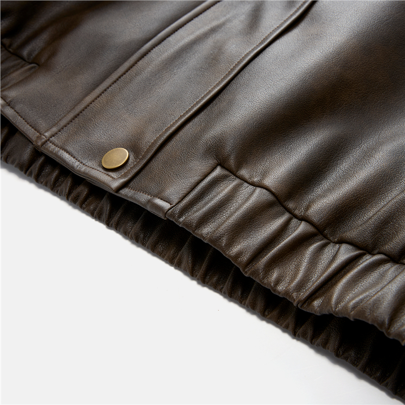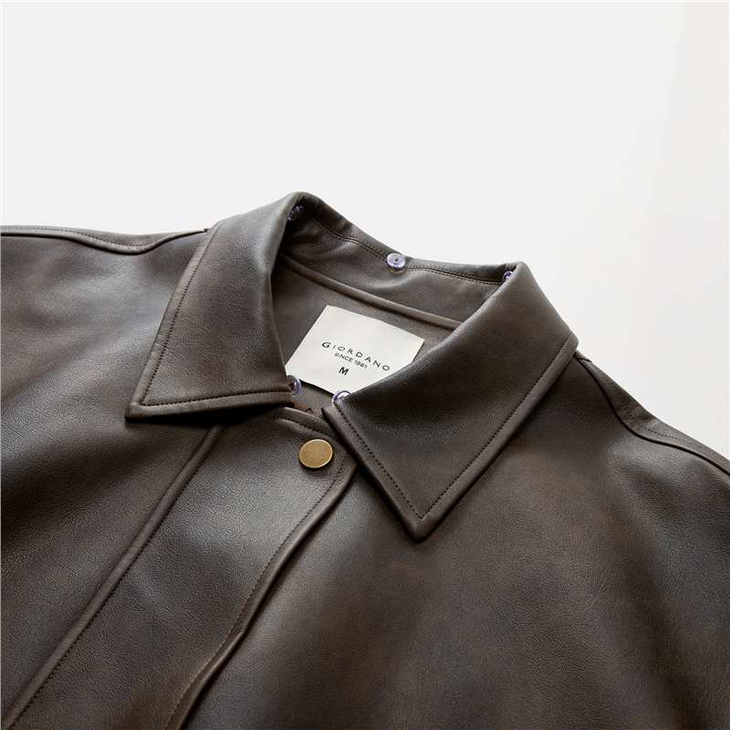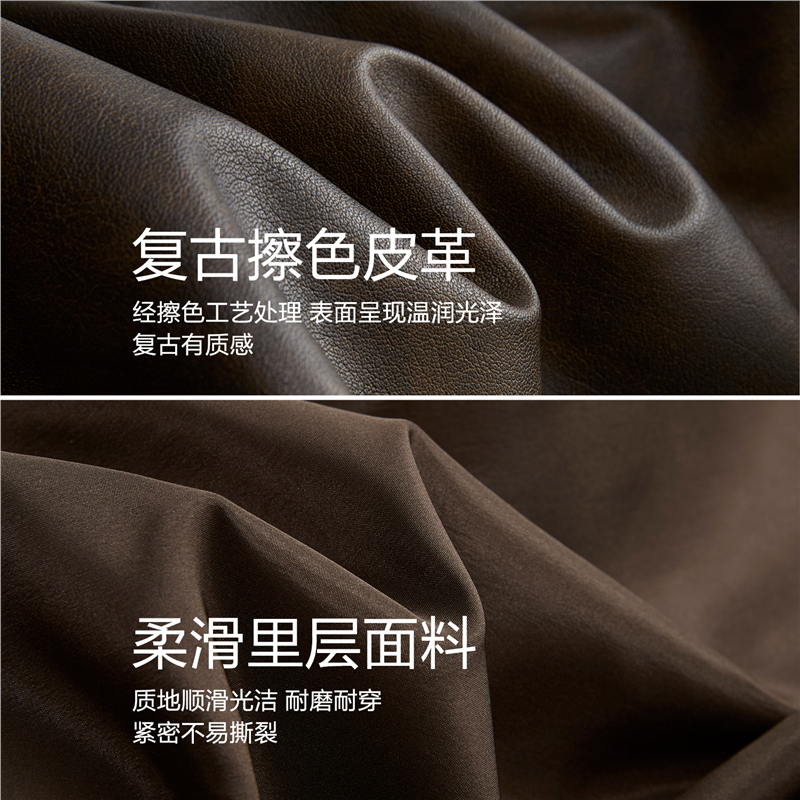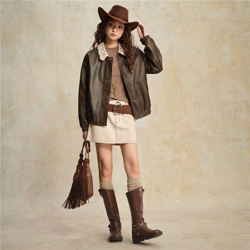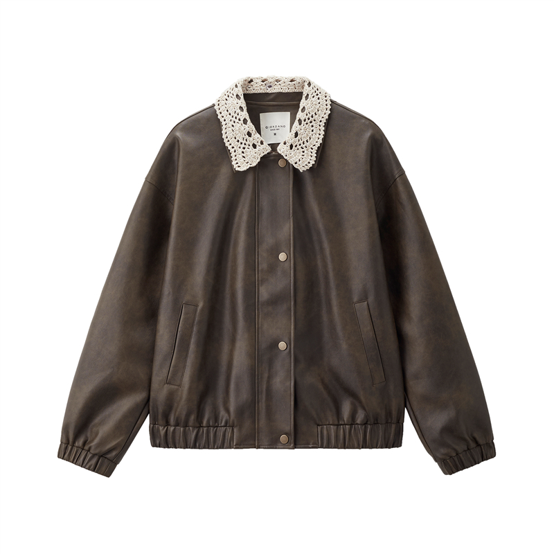 複古擦色皮革,光澤有質感 拼接蕾絲翻領,輕鬆拆卸,造型多變 拉鏈門襟,加設防風片,不易入風。