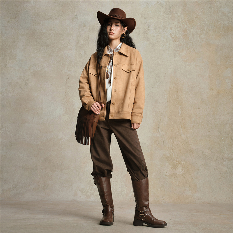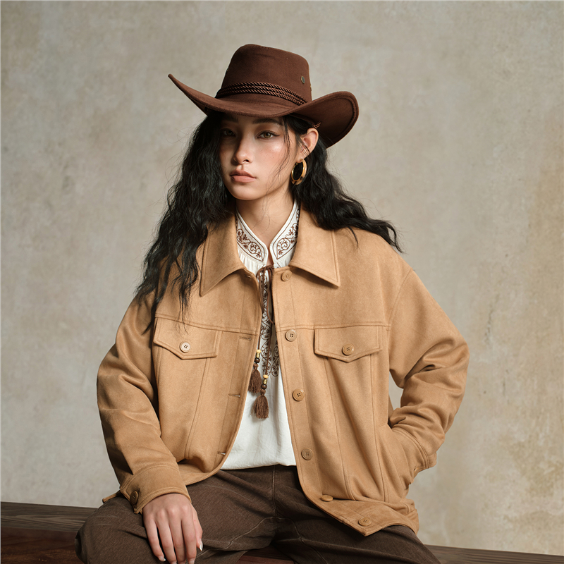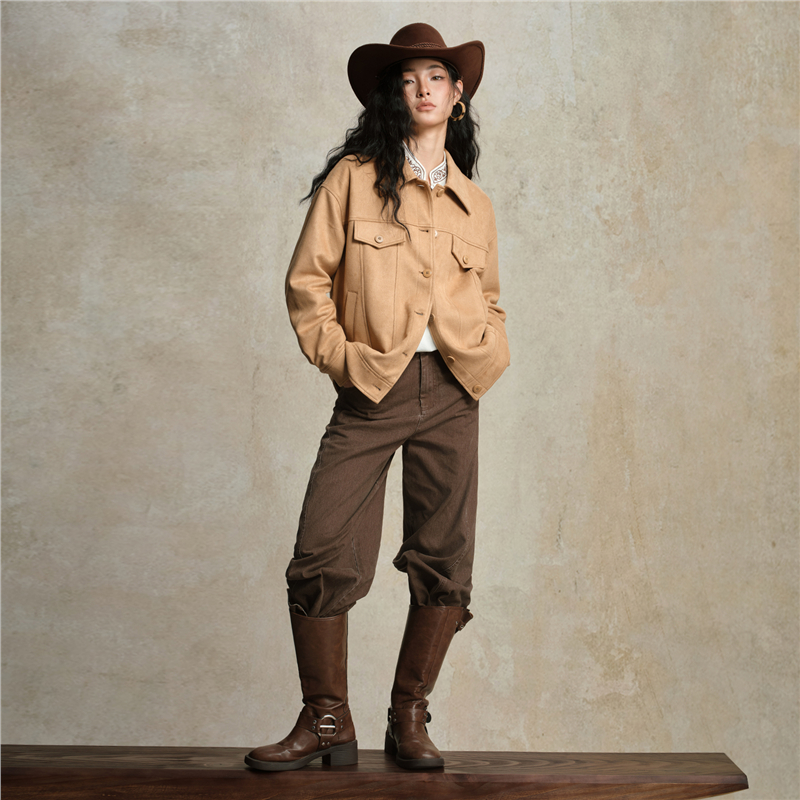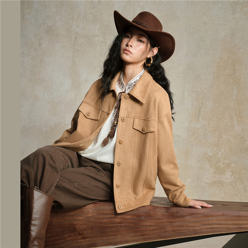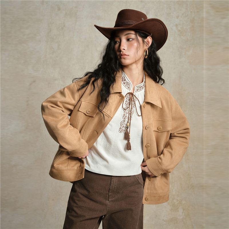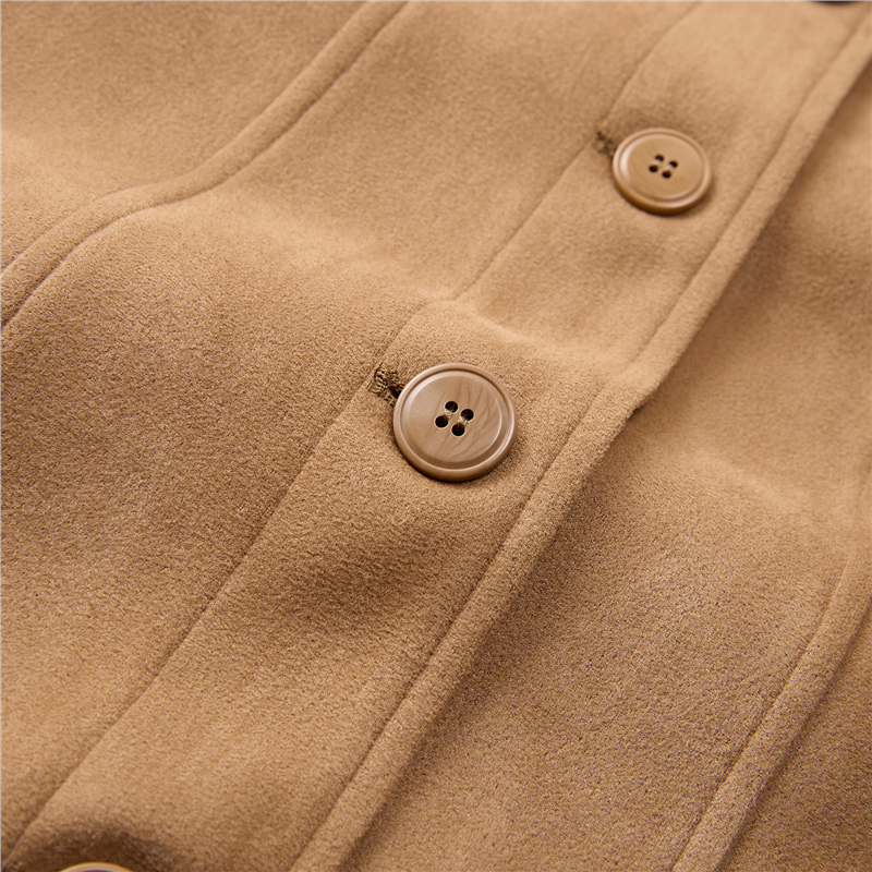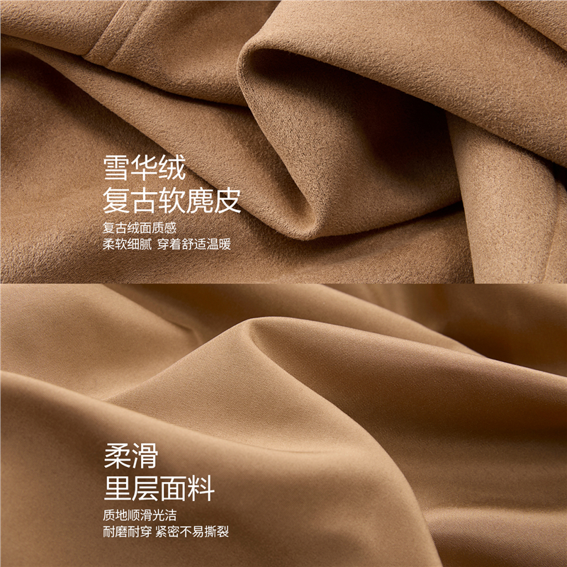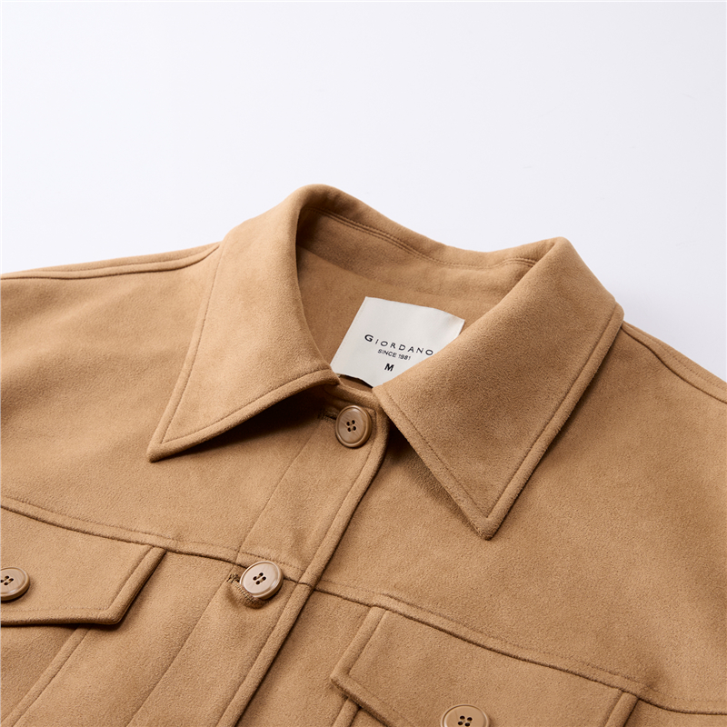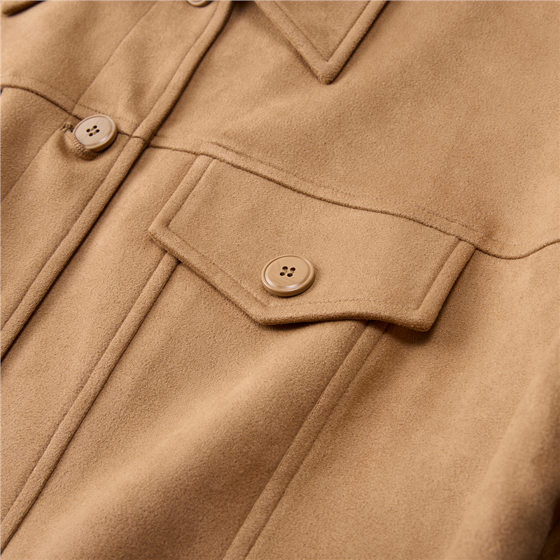 雪華絨面料,觸感溫暖 柔滑內裏,親膚細膩 翻領設計,工整美觀,幹淨利落 袋蓋裝飾,破骨點綴,時尚立體。
