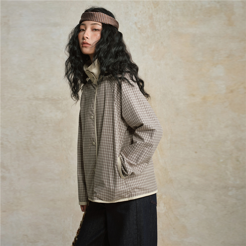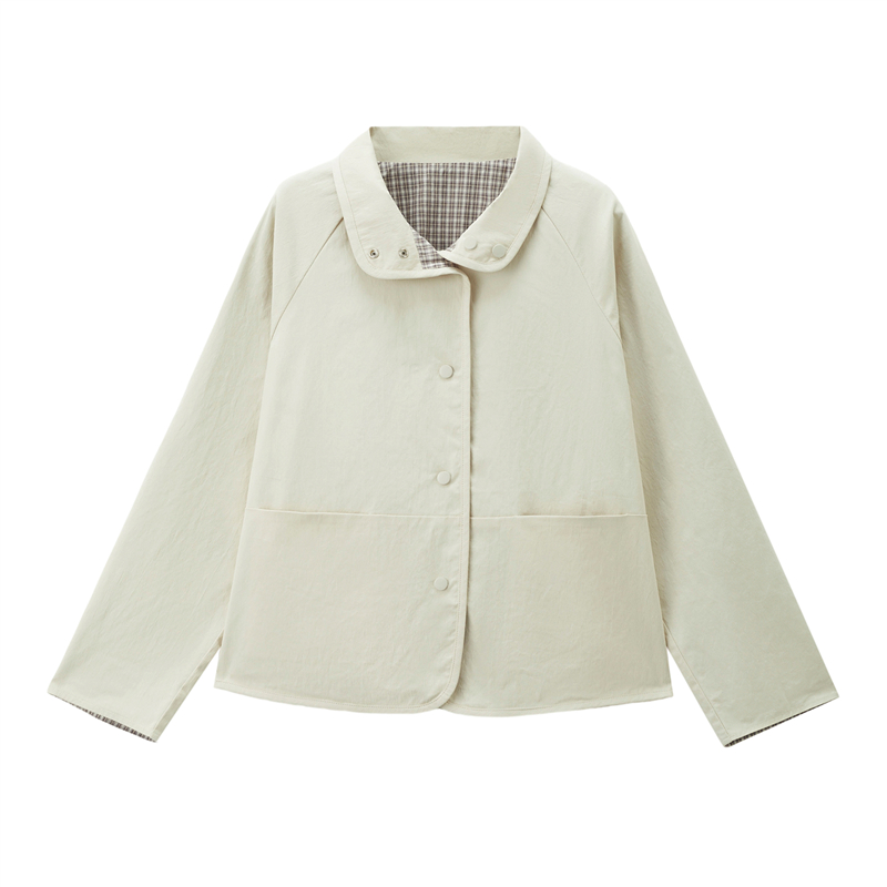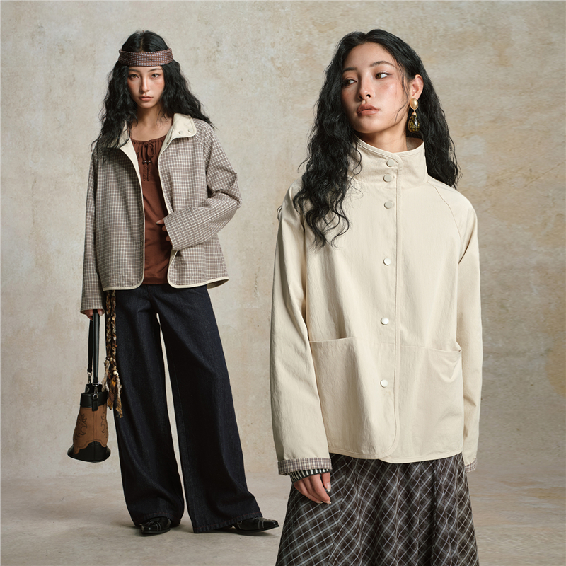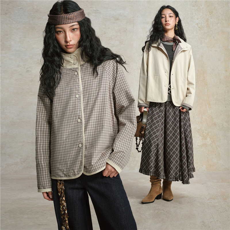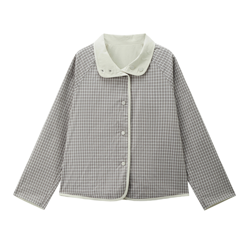 雙面穿格紋翻領插肩梭休閑外套