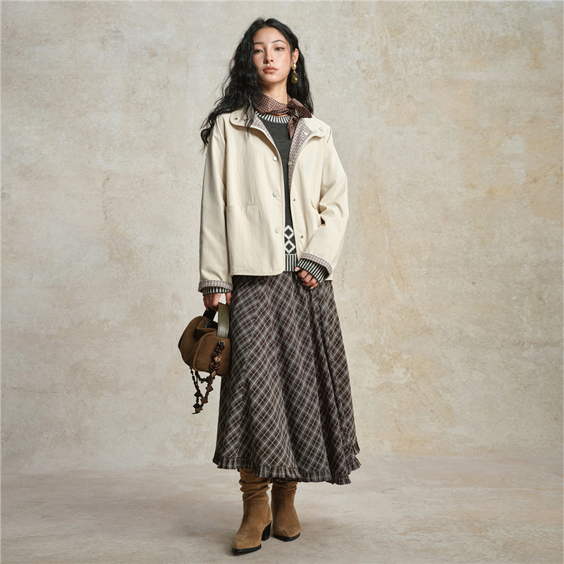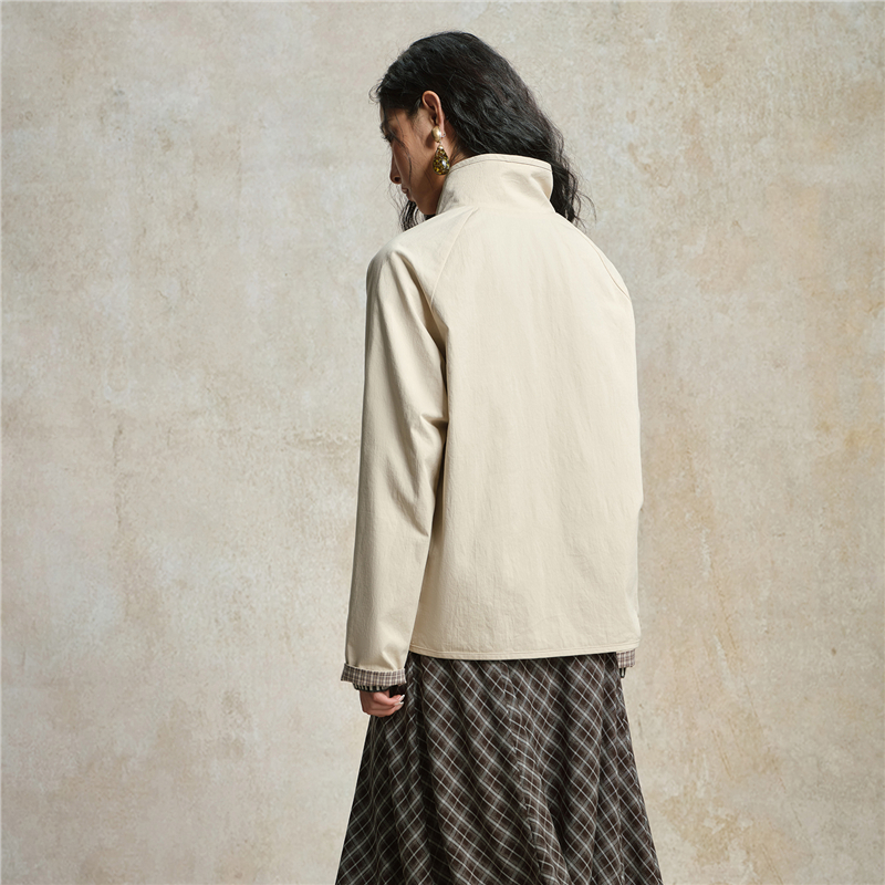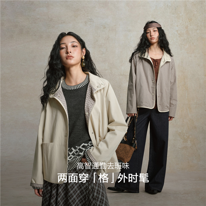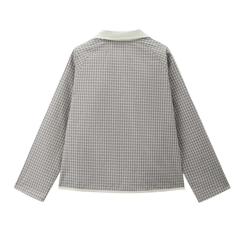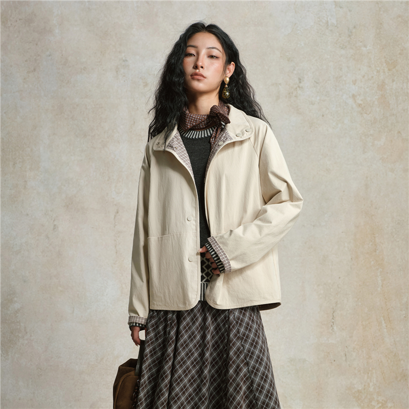 雙面穿格紋翻領插肩梭休閑外套