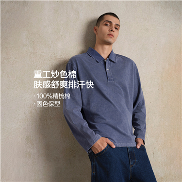 【網上獨家】男裝純色寬鬆絨感長袖Polo