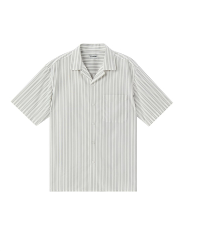 男裝條紋單口袋短袖休閑襯衫