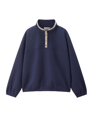 【網上獨家】女裝拼接撞色格紋立領半開襟衛衣