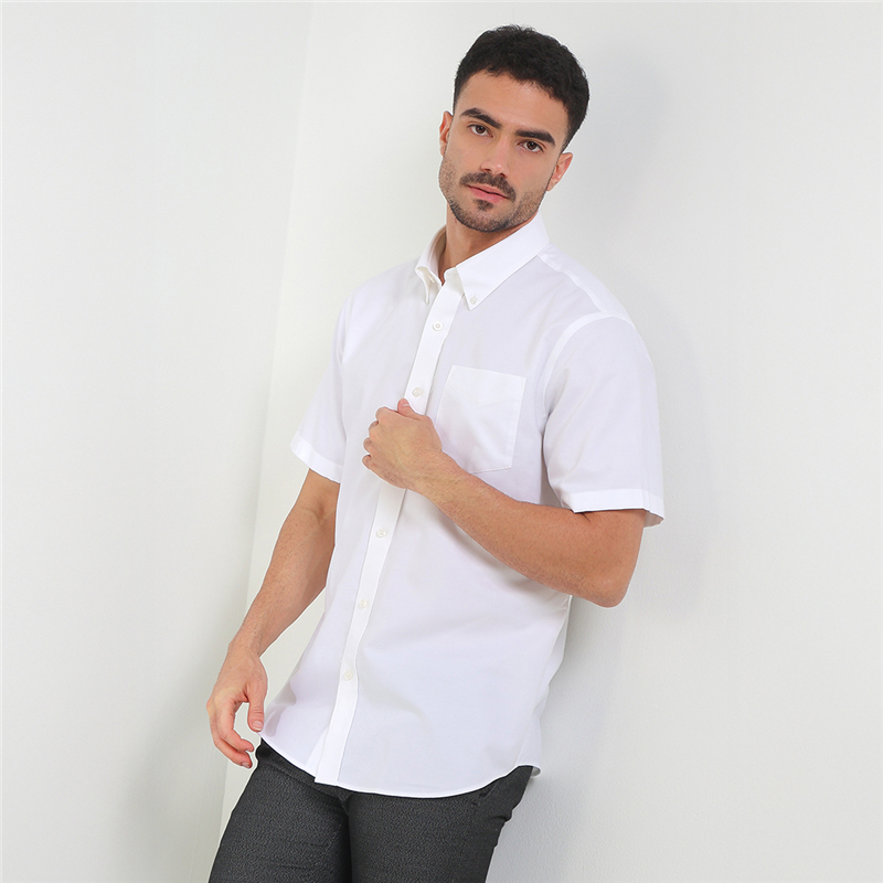 - Short-sleeve shirt in a solid tone for a timeless classic look
