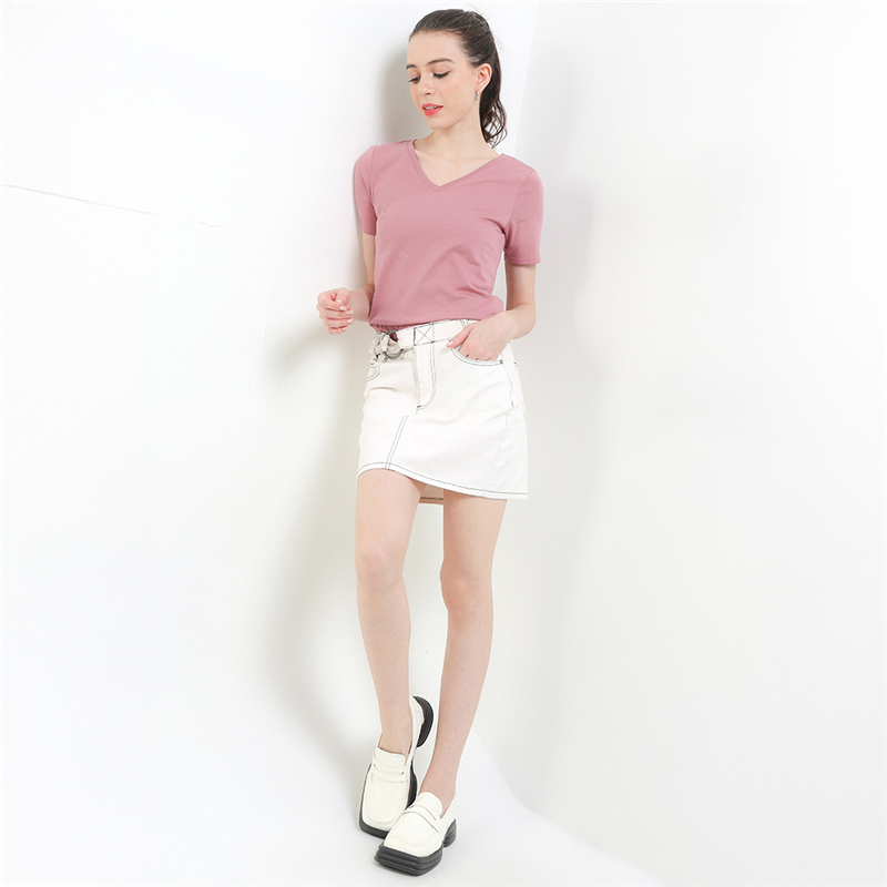 - Casual solid-color T-shirt for an easy basic look