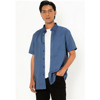 Men's Cotton Faux Denim Oversize Short Sleeve Shirt