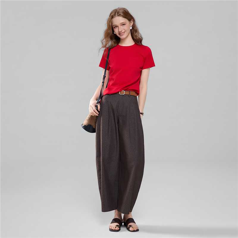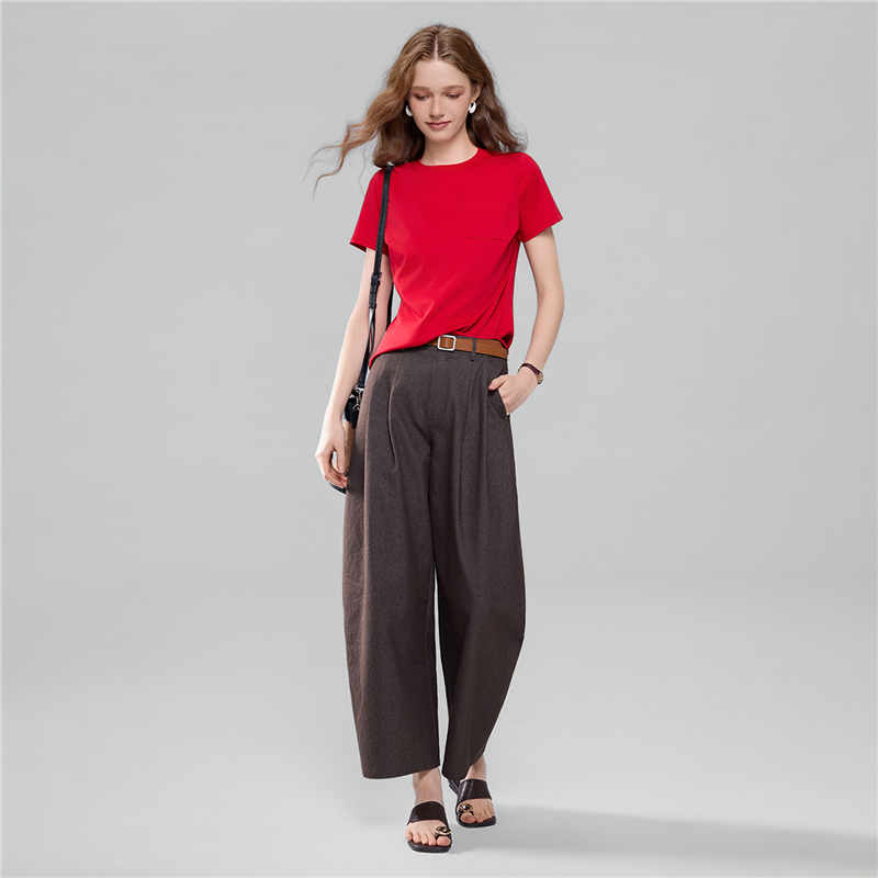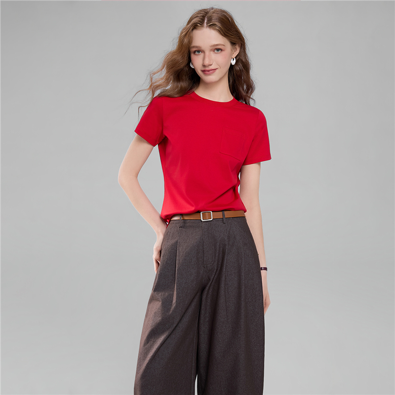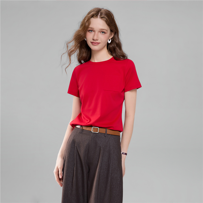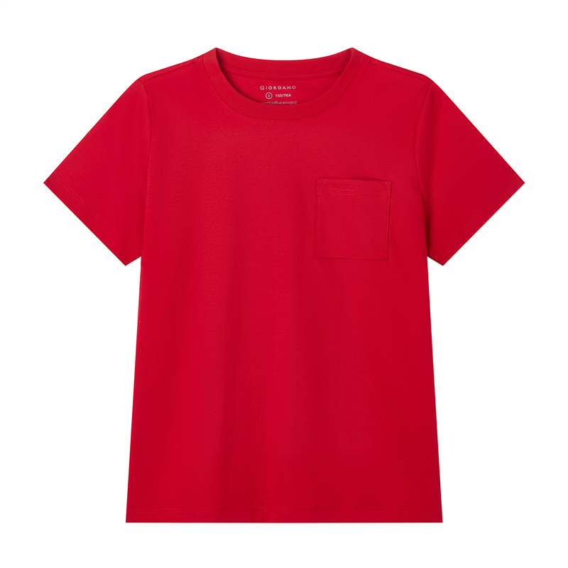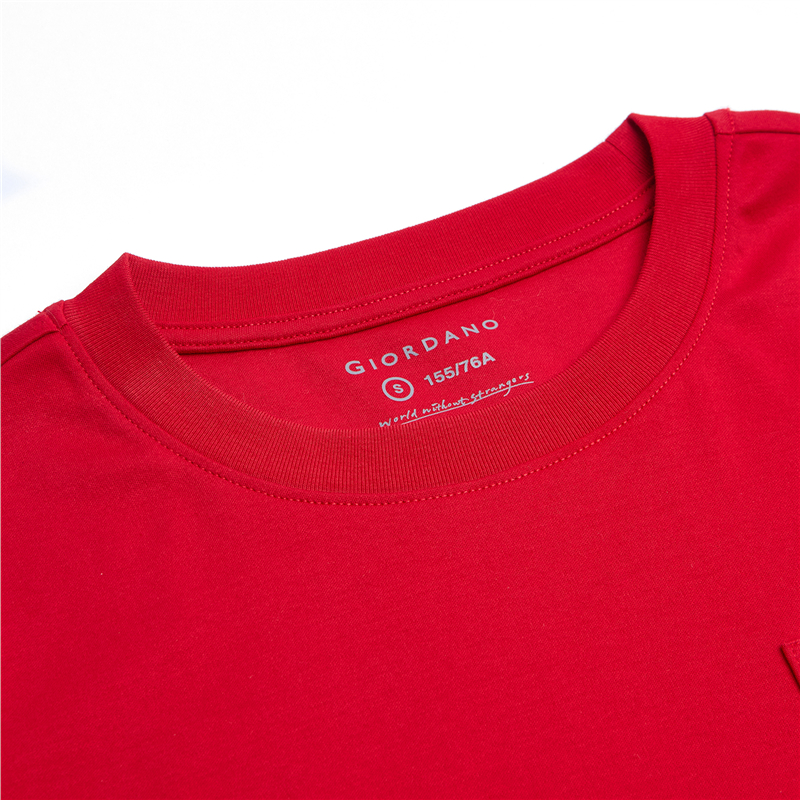 Giordano Liquid Touch T-Shirt, crafted from 100% cotton with 50S fine yarn double-knit fabric. Treated with liquid ammonia finishing for a smoother hand-feel, better shape retention, and improved wash durability, resisting deformation.