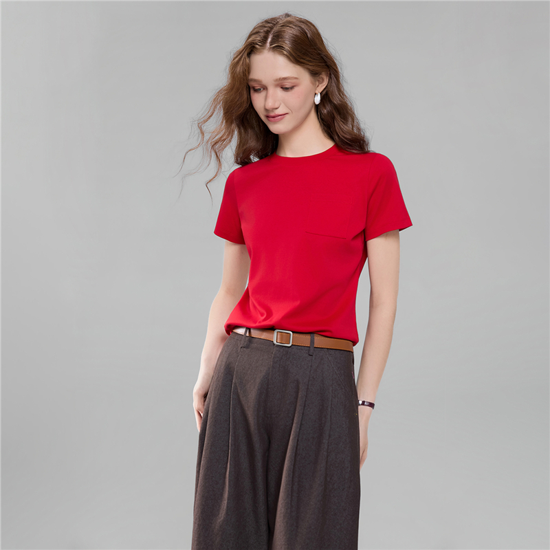Regular fit, comfortable and clean design, adding back neck tape ensures lasting structure. With chest pocket and side slits at the hem, offering refined details that accentuate the waistline and elevate the overall feminine look.