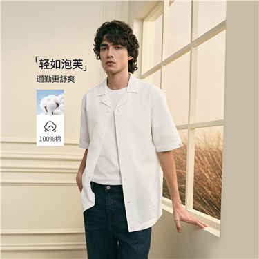 Seersucker camp collar short sleeve shirt