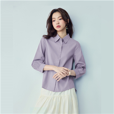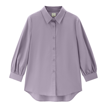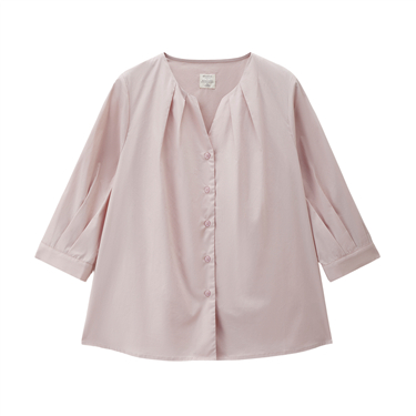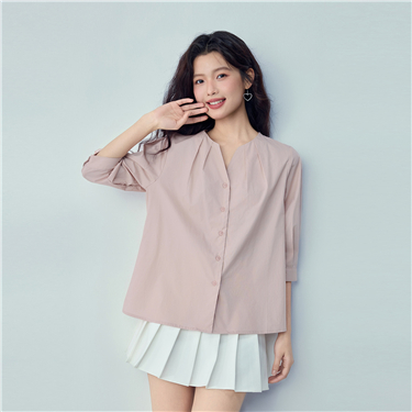 V-neck collar 3/4 sleeve cotton poplin shirt