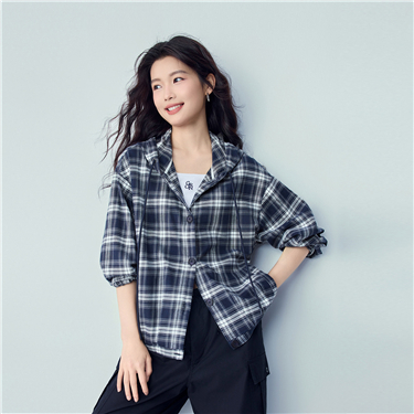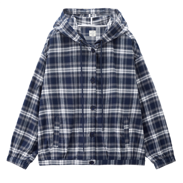 100% Cotton flannel plaid hooded shirt