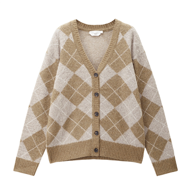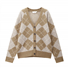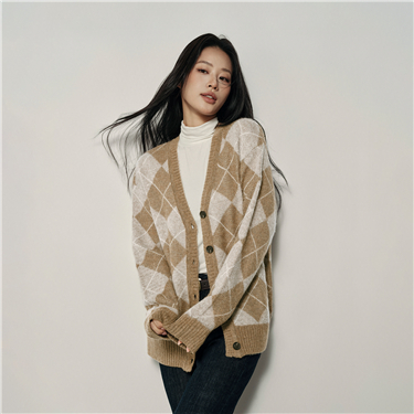 Women's Korea Collection Contrast Check V Neck Cardigan