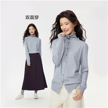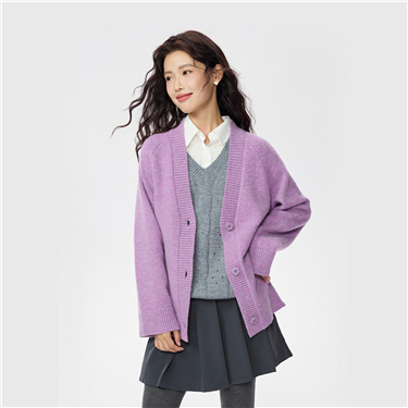 Women's Korea Collection Wool Blend Crew Neck Cardigan
