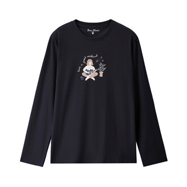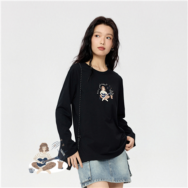 【Beau Monde】Women's Cotton Embroidery Long Sleeve Tee