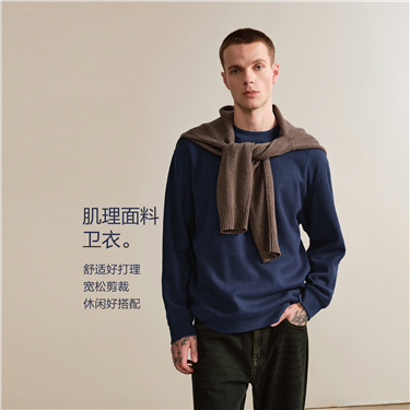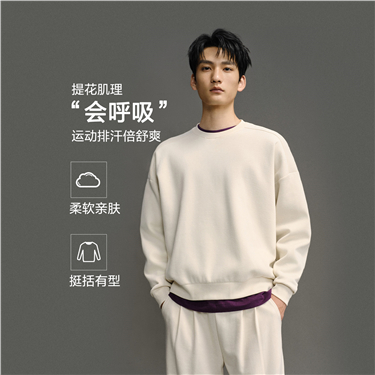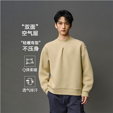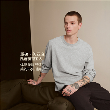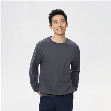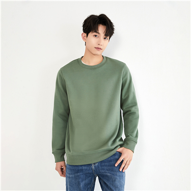 [Online Exclusive] Men's Solid Color Round Neck Long Sleeve Pullover Sweatshirt