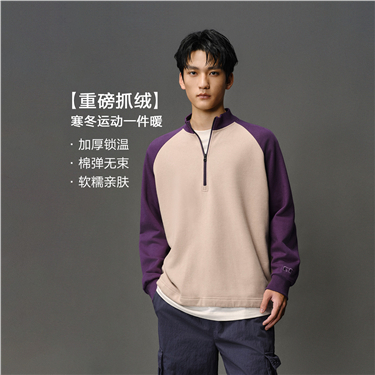 Fleece lined stand collar contrast sweatshirt