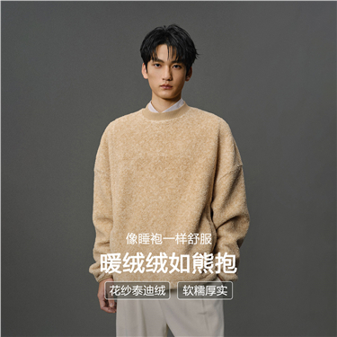 【Online Exclusive】Men's Ripped Collar Half-Cut Loose-Fitting Knit Sweatshirt