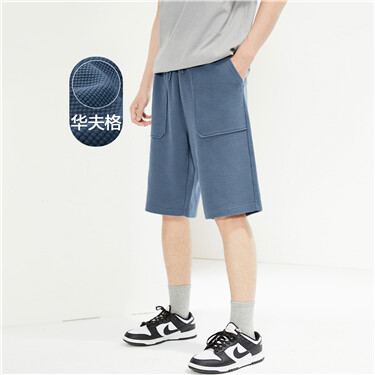 Big pockets elastic waist waffle shorts
