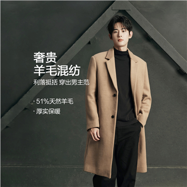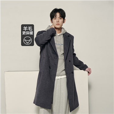 Men's Korea Collection Notch Lapel Mid Length Wool Coat