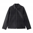 Fleece lined stand collar loose PU jacket