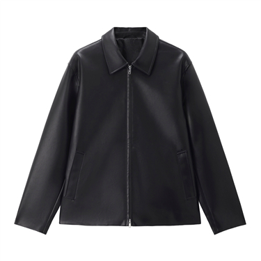 Notched collar loose pu leather jacket