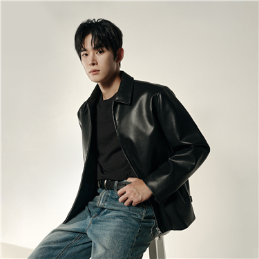 Men's Korea Collection Lapel Double Zipper Leather Jacket