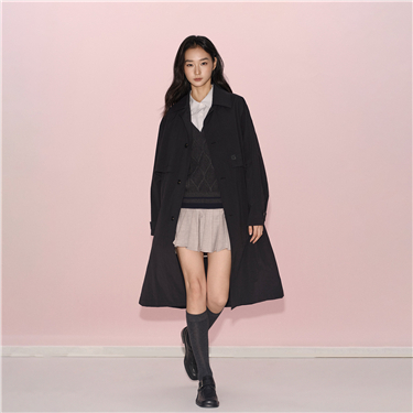Unisex brand print mid-length trench coat
