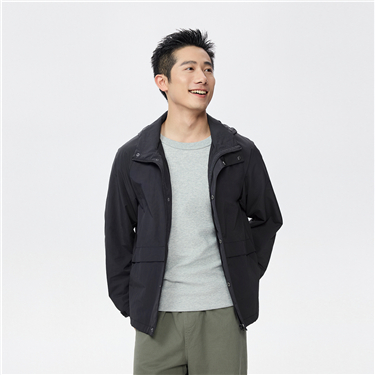 Cargo pockets hooded windbreaker