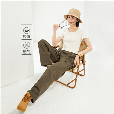 100% Cotton elastic waist straight pants
