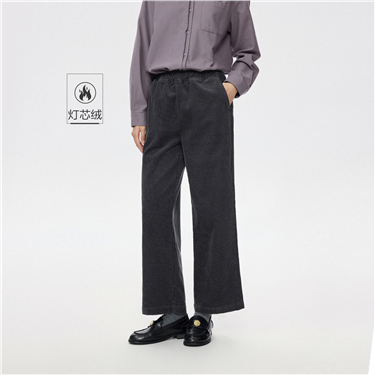 100% Cotton Corduroy Elastic Waist Wide Leg Pants