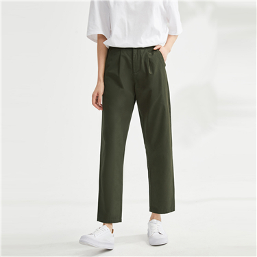 Sanding Semi-Elastic Waist Woven Casual Leg Ankle Length Pants