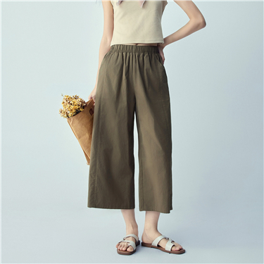 100% Cotton elastic waist wide leg crop pants