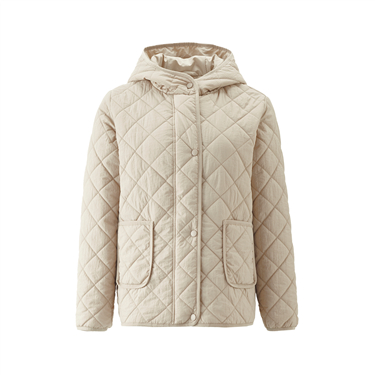 Double pockets quilted hooded jacket