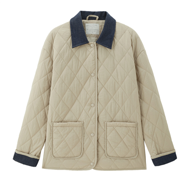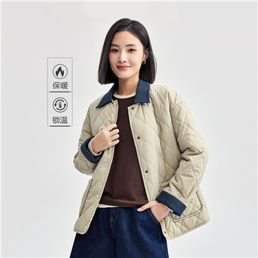 Turndown collar zip front quilted lining jacket
