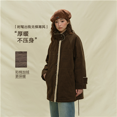 Corduroy spliced long wave quilted jacket