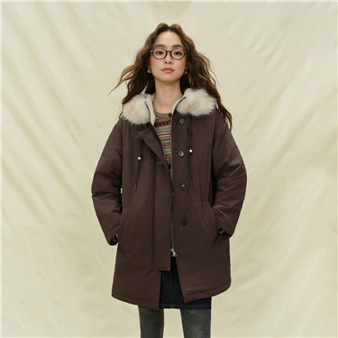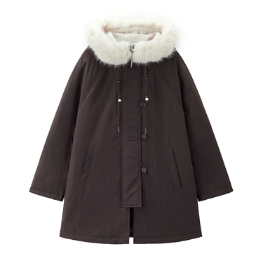 Faux fur hood mid-length padded coat