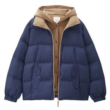 Fake two-piece spliced hooded paded jacket
