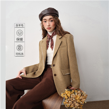 Fake two-piece v-neck loose woolen jacket