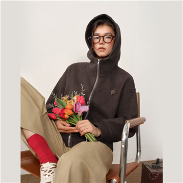 Loop fleece splieced hooded jacket