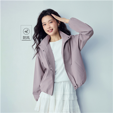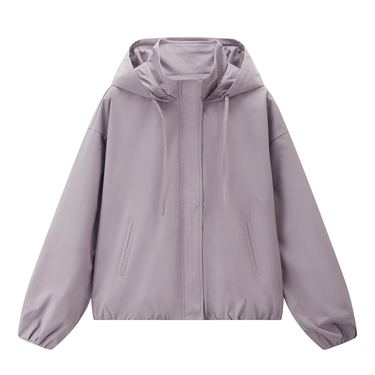 Flat drawstring loose hooded windbreaker