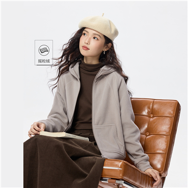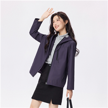 Concealed placket double pockets hooded jacket