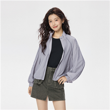 Band collar loose sweat jacket