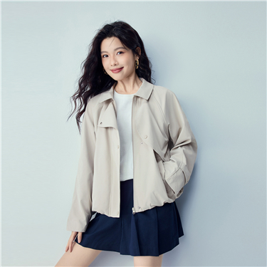 Lapel collar raglan sleeve short trench coat